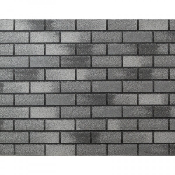 Фасадная плитка Хауберк состоит из одного слоя. Основа – стеклохолст, пропитанный улучшенным битумом, покрытие – базальтовая крошка.