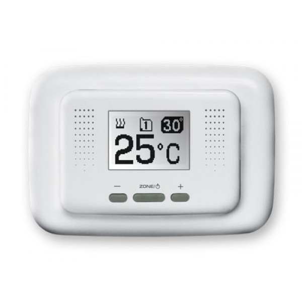 Двухзональный терморегулятор управляет двумя зонами обогрева одновременно (например, ванная – кухня) с индикацией температуры пола в каждом помещении.