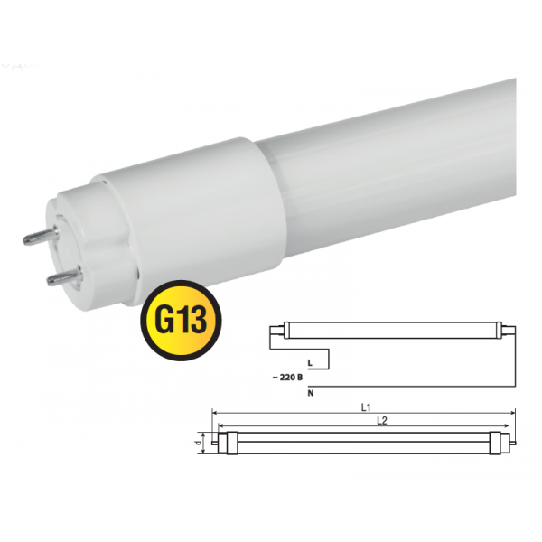 Лампа NLL-G-T8 повторяет форму и размеры стандартных линейных люминесцентных ламп Т8 и идеально подходит к любому светильнику, в котором используются данные типы ламп. В светодиодных лампах серии NLL-G-T8 применяются высокоэффективные планарные светодиоды Epistar, обеспечивающие эффективность 90 лм/Вт. Диапазон рабочих температур окружающей среды от -40 до +40 ˚С. При этом коэффициент цветопередачи ламп обеспечивается на уровне Ra>80.
