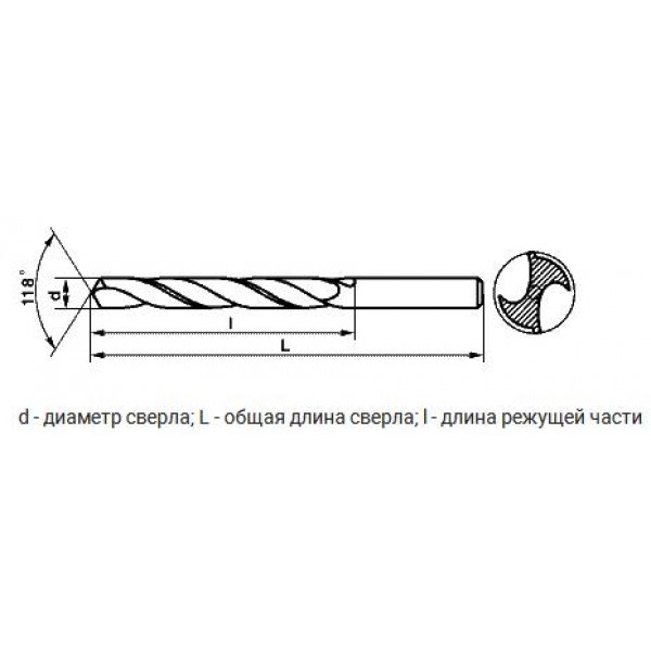 Класс точности B. Метод изготовления: продольно-винтовой прокат («вальцованные»). Сверла изготовлены из быстрорежущей стали – Р6М5 (HSS) и предназначены для сверления глухих и сквозных отверстий в сталях, серых и ковких чугунах. Угол заточки режущей кромки при вершине 118 градусов.