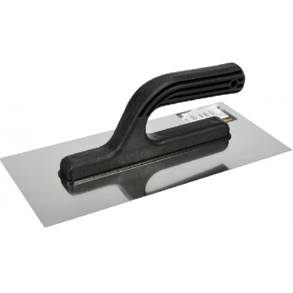 Терка прямая изготовлена из нержавеющей стали. Оснащена эргономичной пластиковой ручкой. Предназначена для нанесения и разравнивания штукатурных смесей и клеевых растворов. Размер полотна 270 мм х 125 мм.