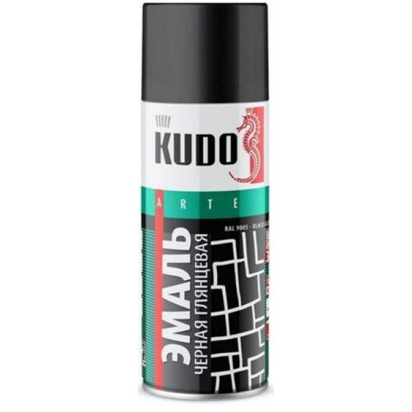 Эмаль Kudo черная глянцевая универсальная 520 мл. Аэрозоль. Для окраски предварительного загрунтованных металлических и деревянных поверхностей. Применяется для наружных и внутренних работ. Легко наносится на труднодоступные места, имеет хорошую укрывистость и атмосферостойкость.