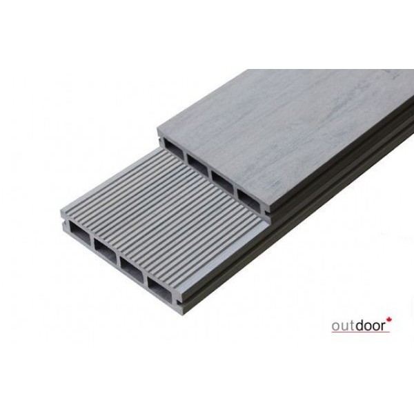 Любителям классических деревянных террас в темных тонах с первого взгляда понравится этот вариант доски. Благородный коричневый оттенок в сочетании со стильными бороздками вдоль прямоугольных досок навевает мысли о вечерних чаепитиях за семейным столом. «Канавки», между тем, служат не только украшением. Это еще и гарантия того, что вы, ваши домашние и гости не поскользнуться на террасе. Лишняя влага стечет вниз по ребристым доскам.