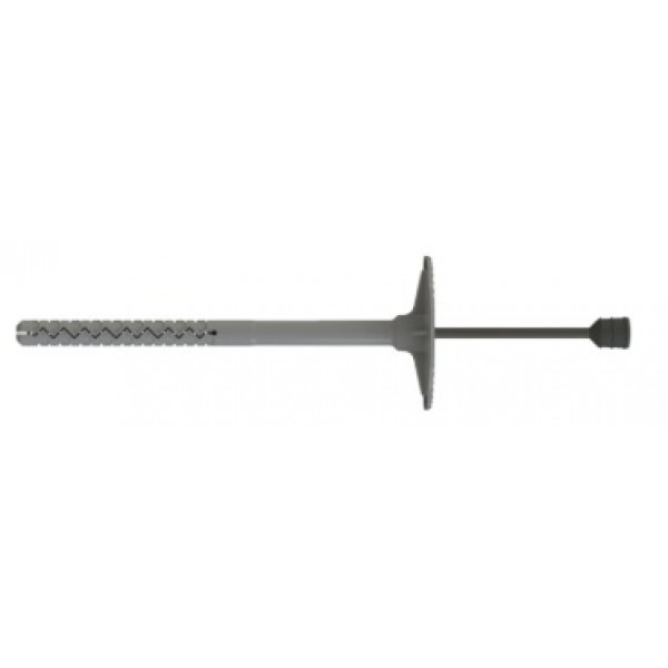 Пластиковый распорный дюбель с грибовидной головкой и оцинкованный металлический гвоздь. Предназначен для крепления теплоизоляции в фасадных системах зданий.