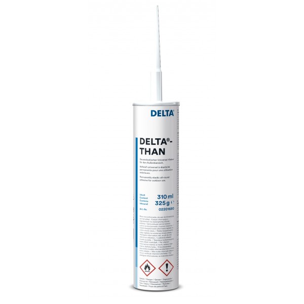 DELTA-THAN - клей для герметичного воздухонепроницаемого соединения гидроизоляционных плёнок с кирпичной кладкой, штукатуркой, металлическими, пластиковыми и деревянными элементами крыши. Наносить клей в виде непрерывного жгута диаметром 8 мм. Допускается использование с элементами из нестроганной древесины. Не следует применять на основаниях из полистрирола. Клей применяется в качестве герметика при устройстве примыканий металлических планок к стенам/трубам при устройстве крыш. Также используется для проклейки отсечной гидроизоляции и профилированных/дренажных мембран.