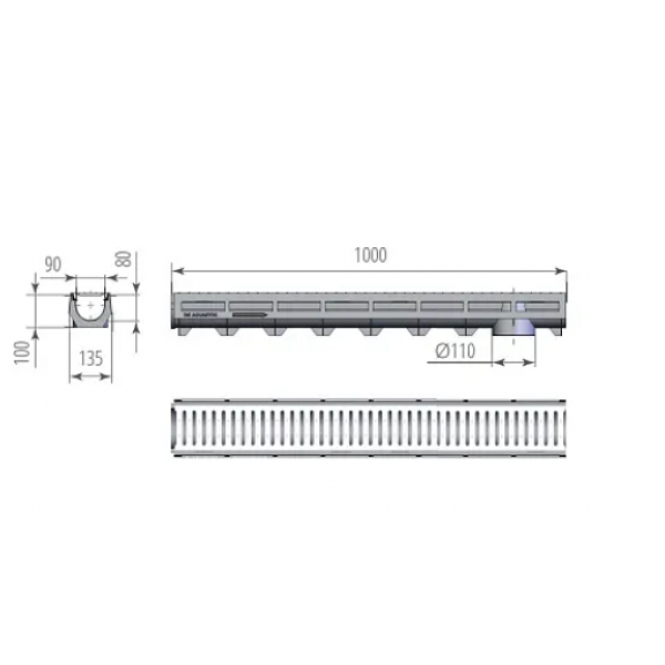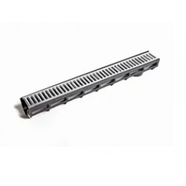 Лоток водоотводный AQUA-TOP с оцинкованной решеткой. ХАРАКТЕРИСТИКИ: гидравлическое сечение DN 90; вес – 1,5…1,8 кг в сборе с решеткой; не требуется специальных фиксаторов решетки; вертикальный патрубок для возможности соединения с трубкой диаметром от 110мм; ОСНОВНЫЕ ПРЕИМУЩЕСТВА: