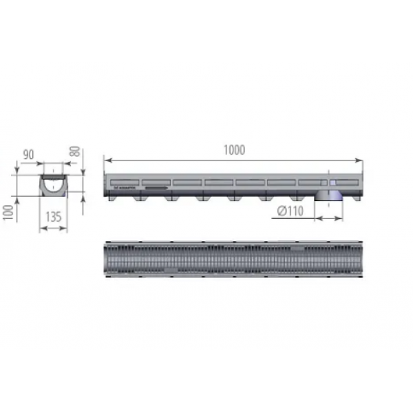 Лоток водоотводный AQUA-TOP с пластиковой решеткой. Каналы серии «Aqua-Top» поставляются в сборе с пластиковыми и оцинкованными решетками. Это самая экономичная серия пластиковых каналов. Не требуют специальных фиксаторов решетки. Рекомендуются к установке в пешеходных, парковых зонах, частных домовладениях, на въездах в частный гараж легкового транспорта. Есть два исполнения данного канала, с пластиковой и штампованной оцинкованной решеткой. Класс нагрузки А15.
